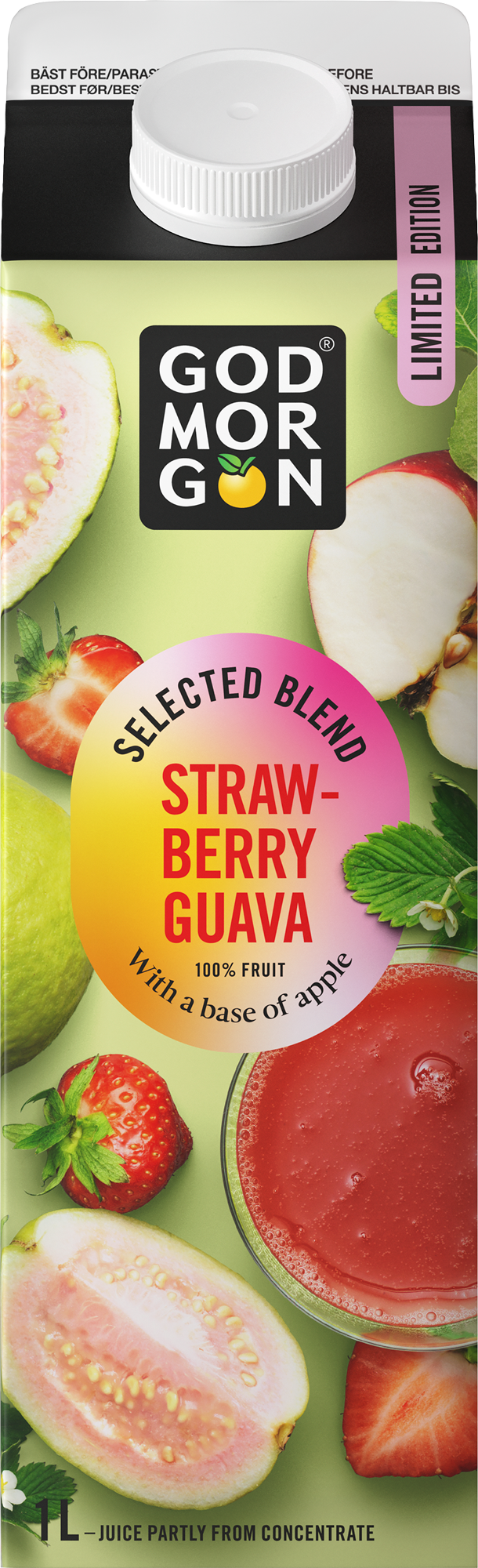 God Morgon® Seleted Blend Strawberry & Guava är en limited edition produkt med smak av milt äpple, söta jordgubbar och en exotisk twist av guava för en spännande smakprofil.