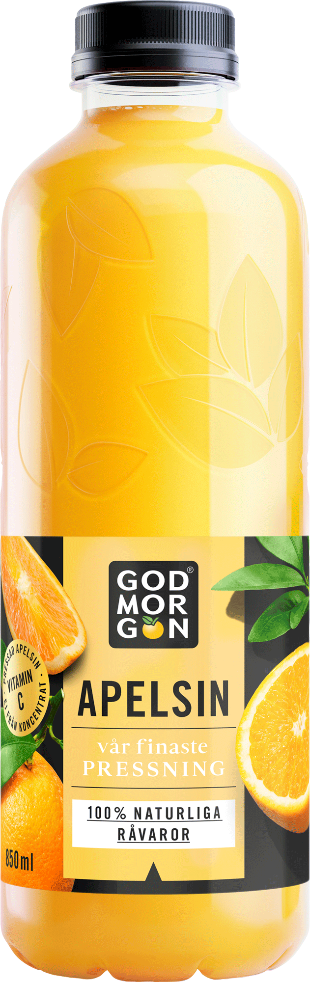 God Morgon® Apelsin är vår finaste pressning som är pressad av säsongens bästa apelsiner för en välbalanserad smak mellan sötma och syrlighet. 100% naturliga råvaror, ej från koncentrat. Juicen är rik på vitamin C och består av hållbart odlade apelsiner – en högkvalitativ apelsinjuice att njuta av under frukosten.