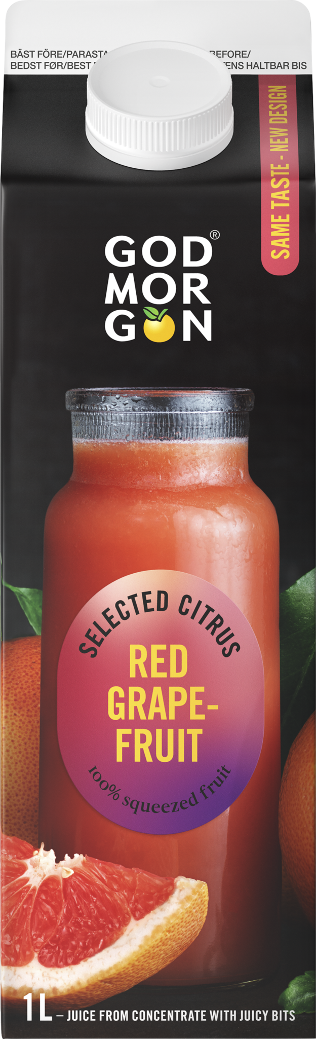 God Morgon® Red Grapefruit är pressad på fina handplockade grapefrukter när de är som bäst. Naturligt fruktkött och Vitamin C. 100% noga utvalda frukter, inget annat.