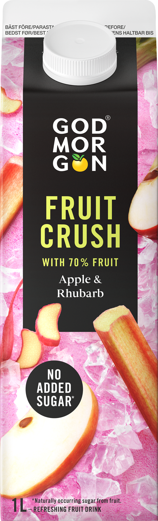 God Morgon® Fruit Crush äpple & rabarber är en uppfriskande och törstsläckande fruktdryck med 70% fruktinnehåll och inget tillsatt socker.