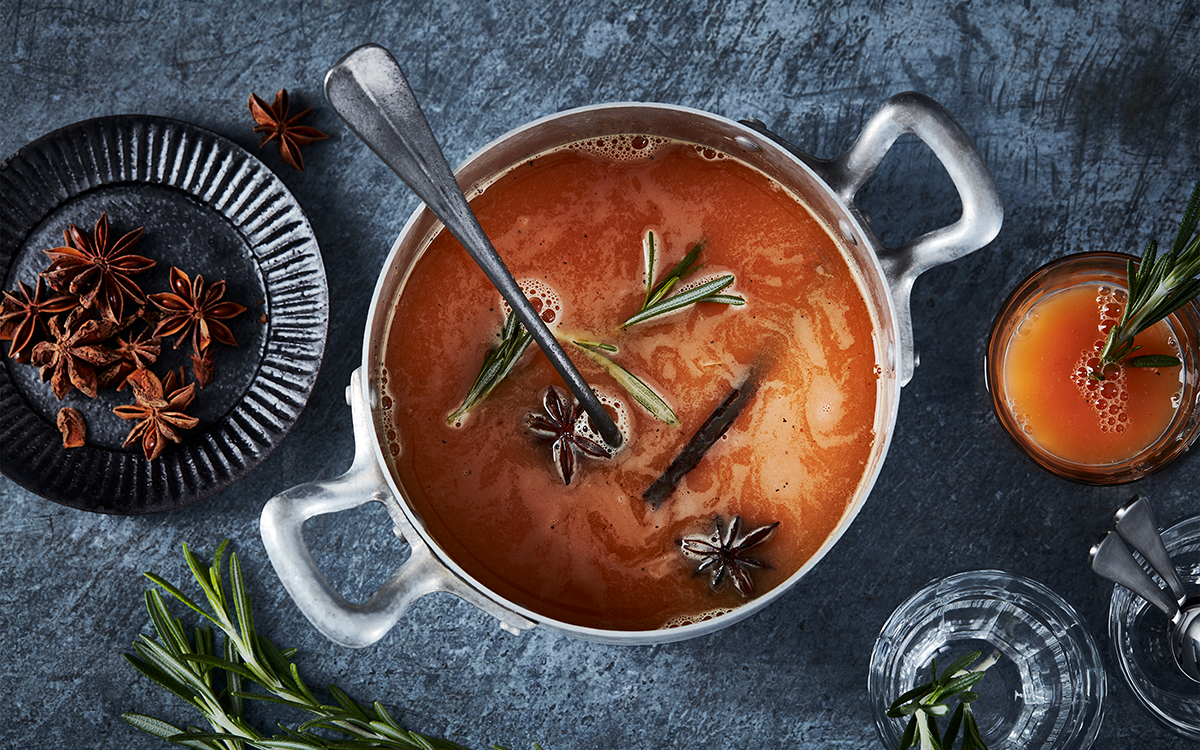 VÄRMANDE BLODAPELSINDRINK MED VANILJ, STJÄRNANIS OCH ROSMARIN